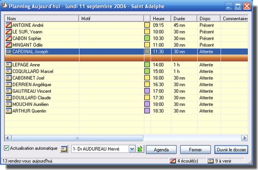 - Jusqu'à 12 codes de couleurs pour identifier les types de rendez-vous