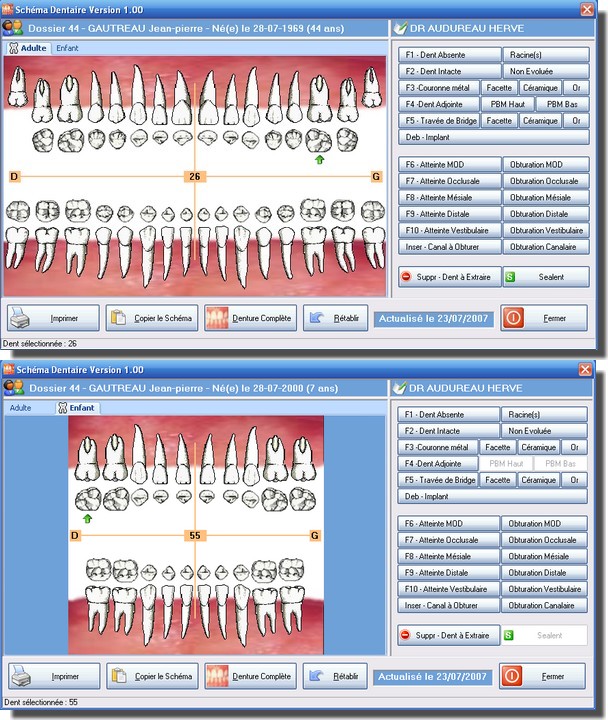 - Schéma dentaire adulte, enfant (voir l'aperçu)