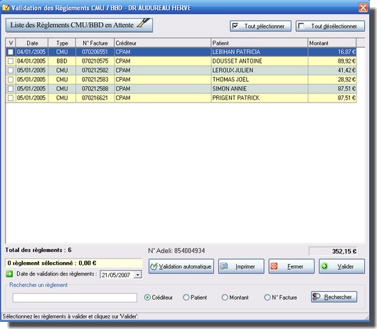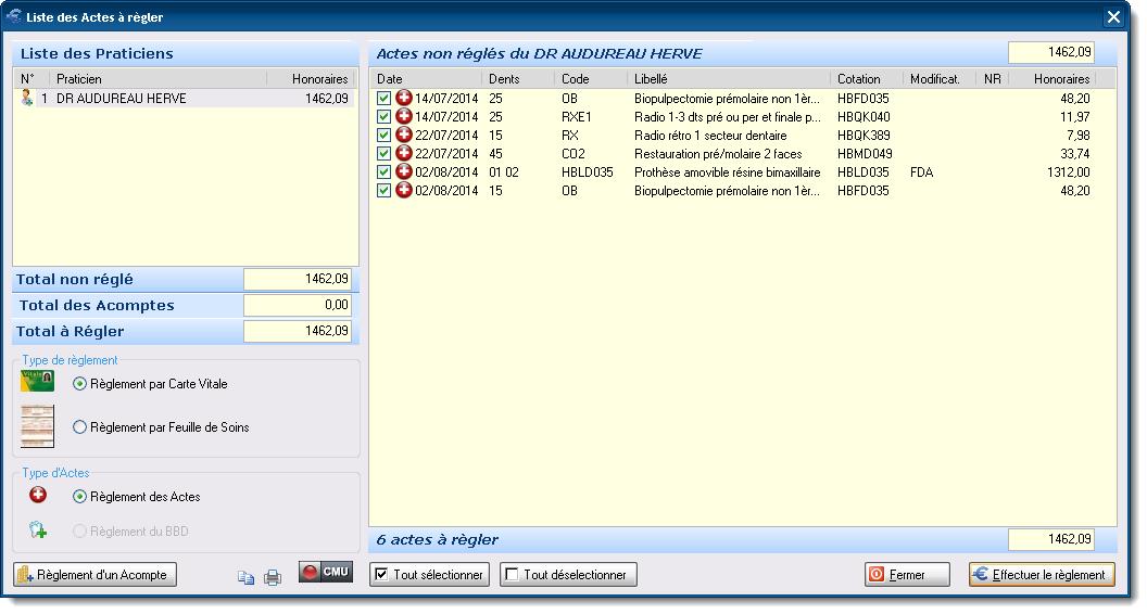 - Gestion des forfaits dentaires CMU (FDC,FDA,...)