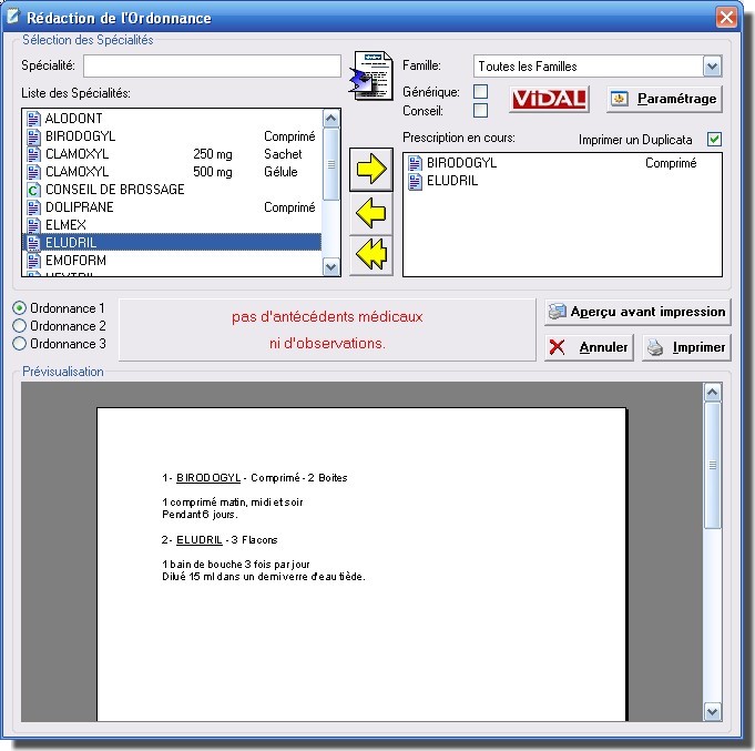 - Mémorisation des ordonnances dans le dossier du patient