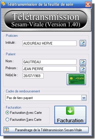 - Facturation Sesam-Vitale avec ou sans tiers-payant (voir l'aperçu)