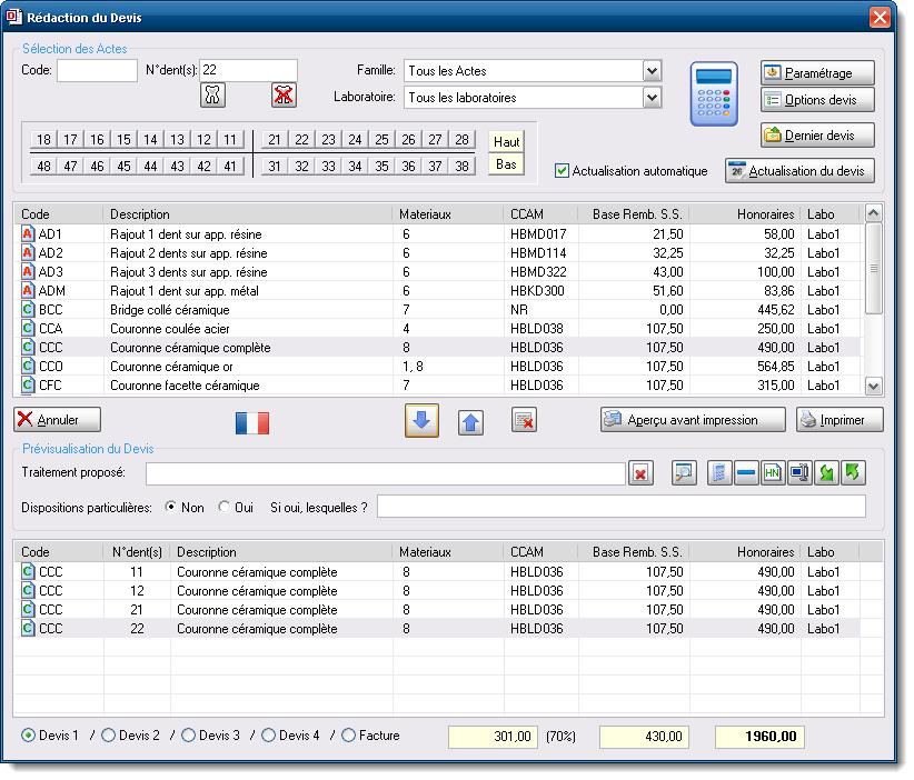 - Mémorisation des devis dans le dossier du patient