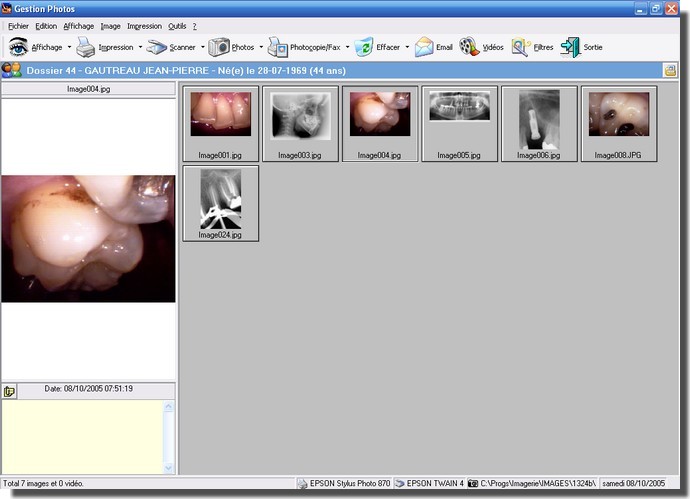 - Affichage de la photo du patient en cours